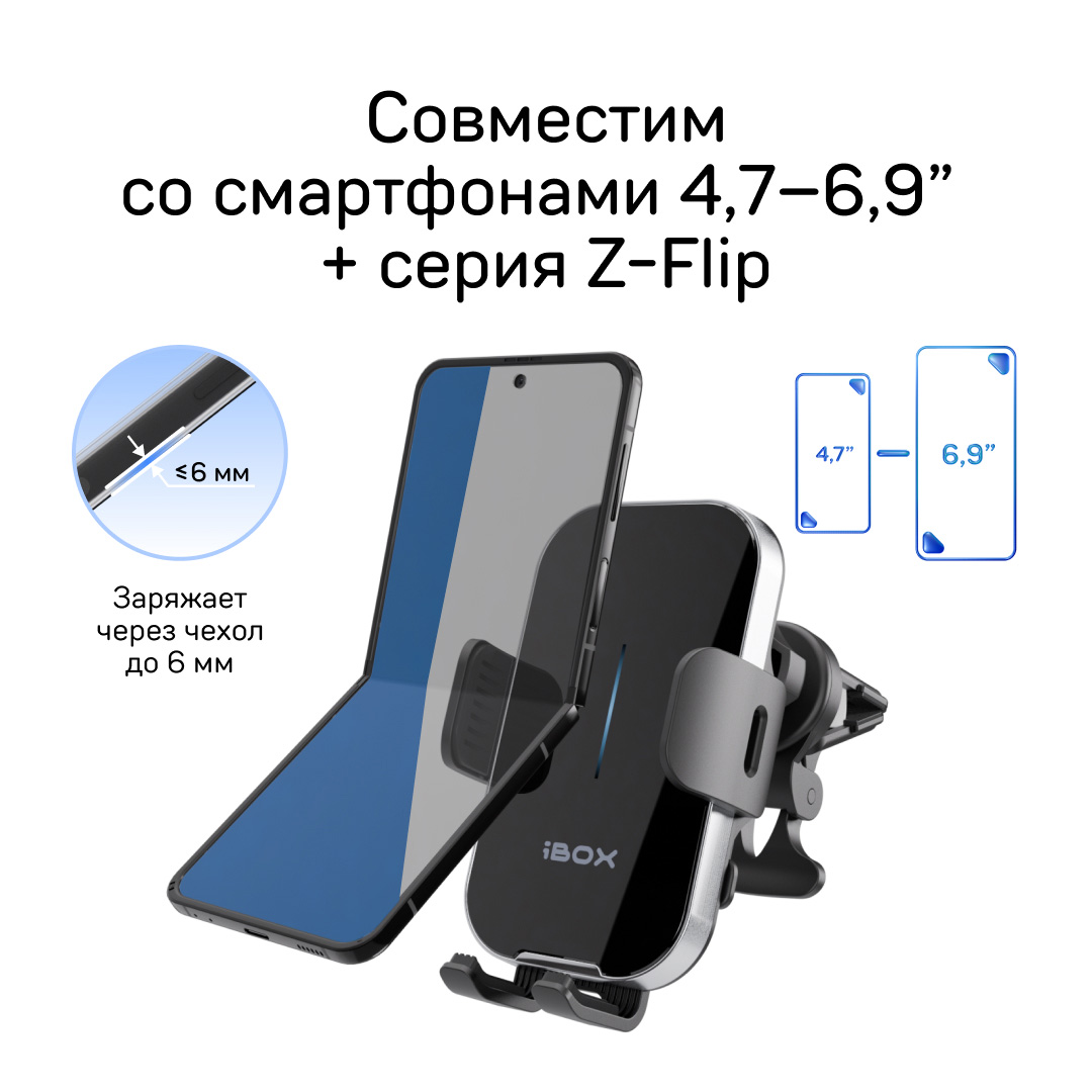 В целом, iBOX TRON i7 — совместим со смартфонами серии Z-Flip, например, SAMSUNG Galaxy Z Flip. Устройство обладает двумя моторами — для управления зажимами и корректировки положения смартфона, чтобы модули зарядки совпали